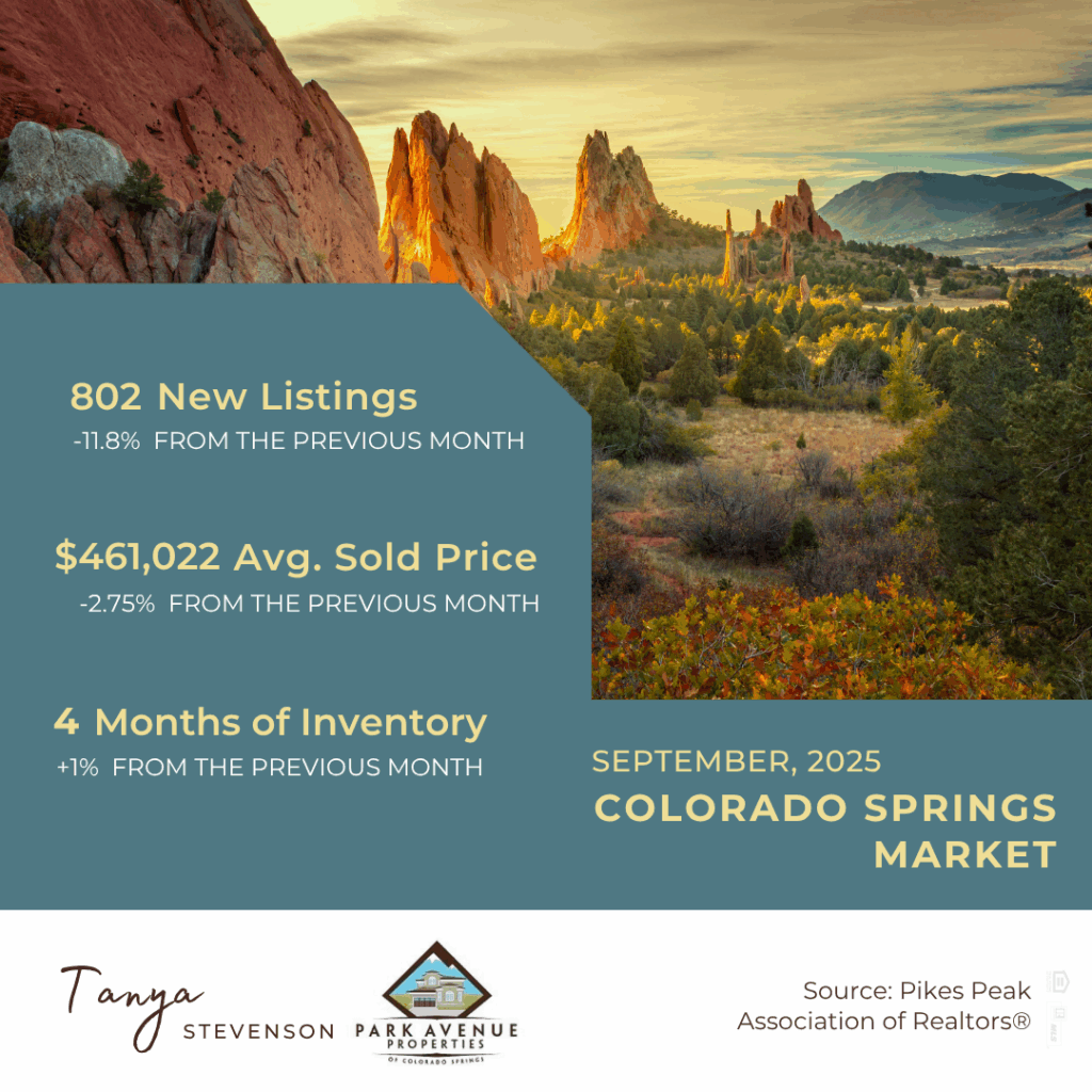 Transitioning into fall (back-to-school, final summer trips, and such), we usually see the summer slowdown linger through September. And that it did! However, some savvy buyers took advantage of the lower rates. Welcome to a more balanced market that is good for both sellers and buyers. Buyers, we have more inventory than in previous years. You are in the best position to negotiate that we’ve seen in years. Sellers, let’s discuss pricing and preparing your home to sell before the end of the year: 719-963-6582 or tanya@parkavehomes.net.